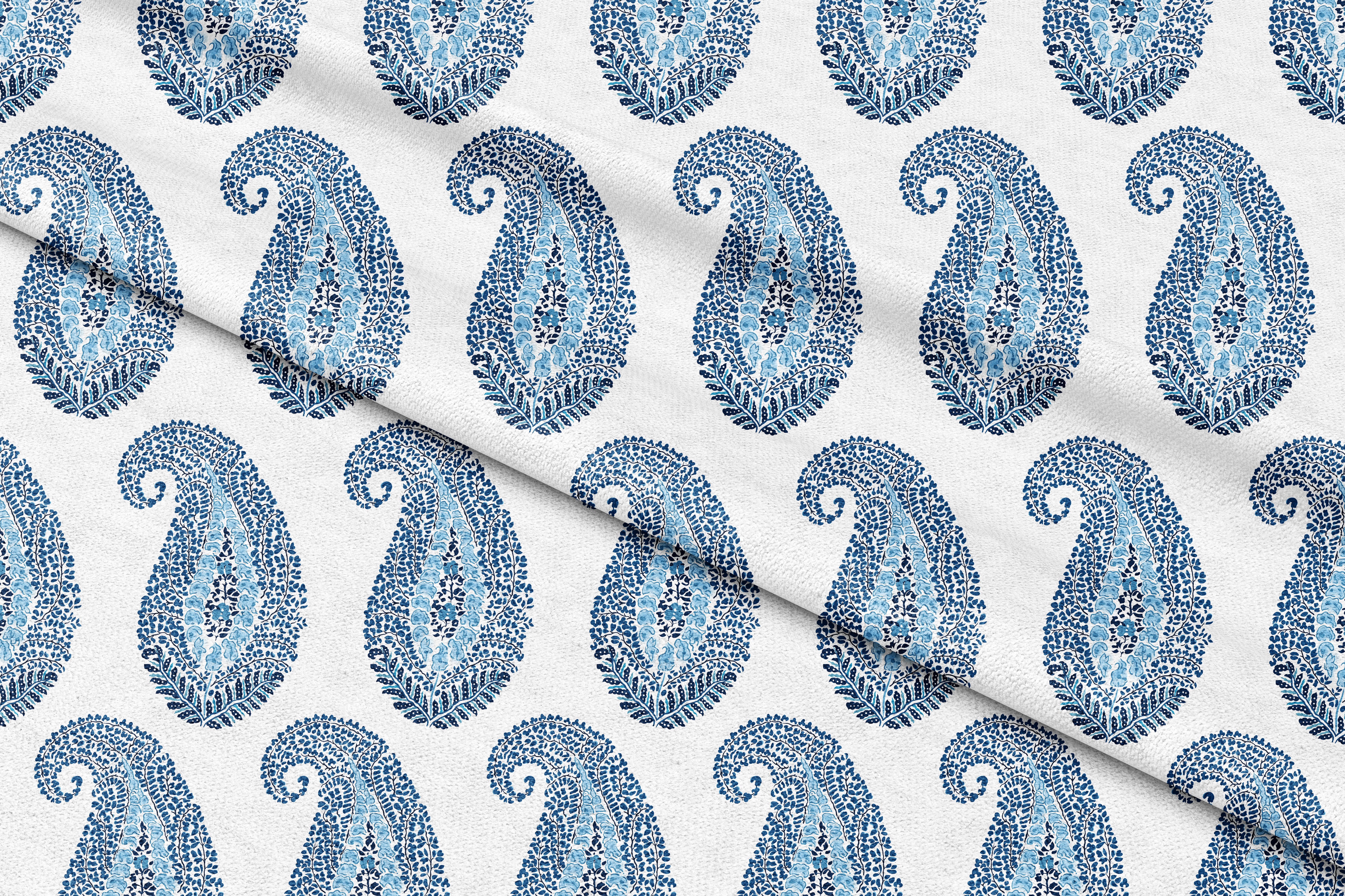 Indigo teardrop - decorative printed fabric - sample