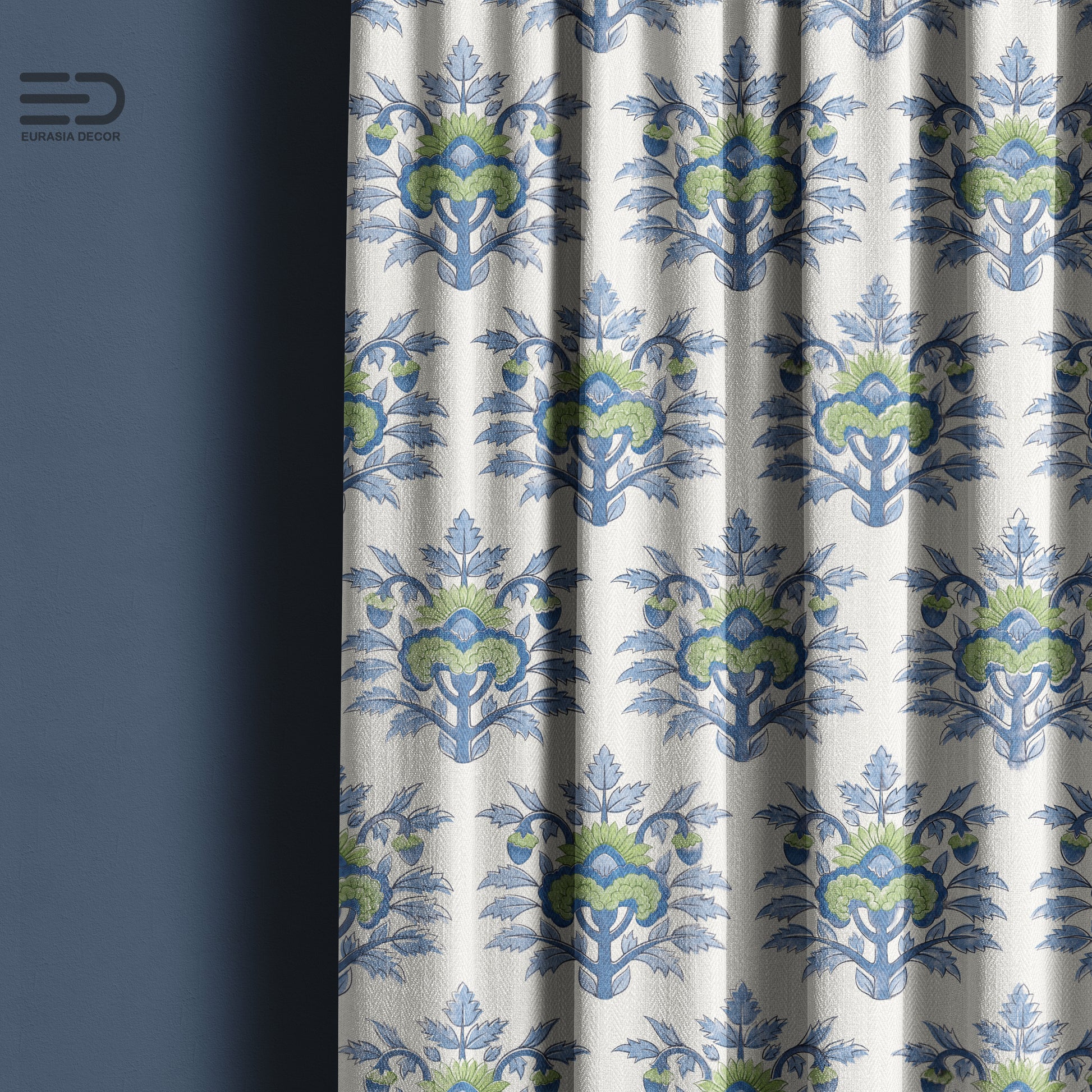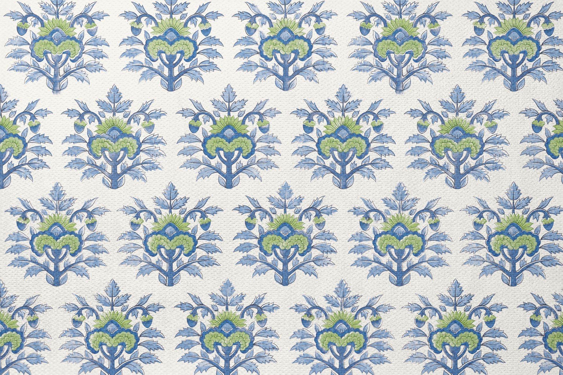 Elevate your space with the refined charm of our Floral Medley Motif fabric. This design features a repeating pattern of stylized medallion motifs in soft blue and green hues, inspired by classic and heritage textiles.