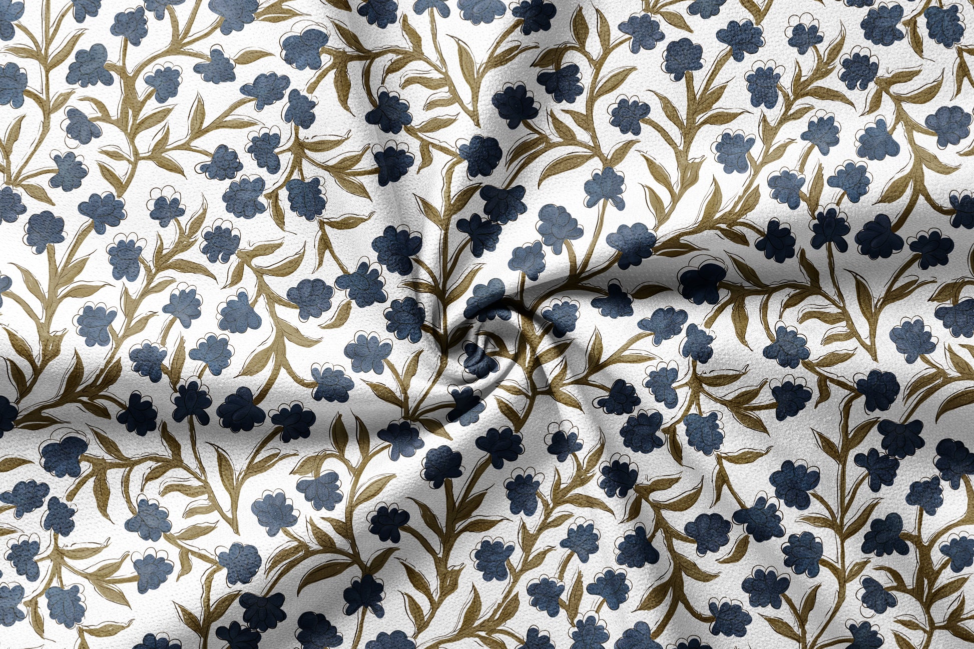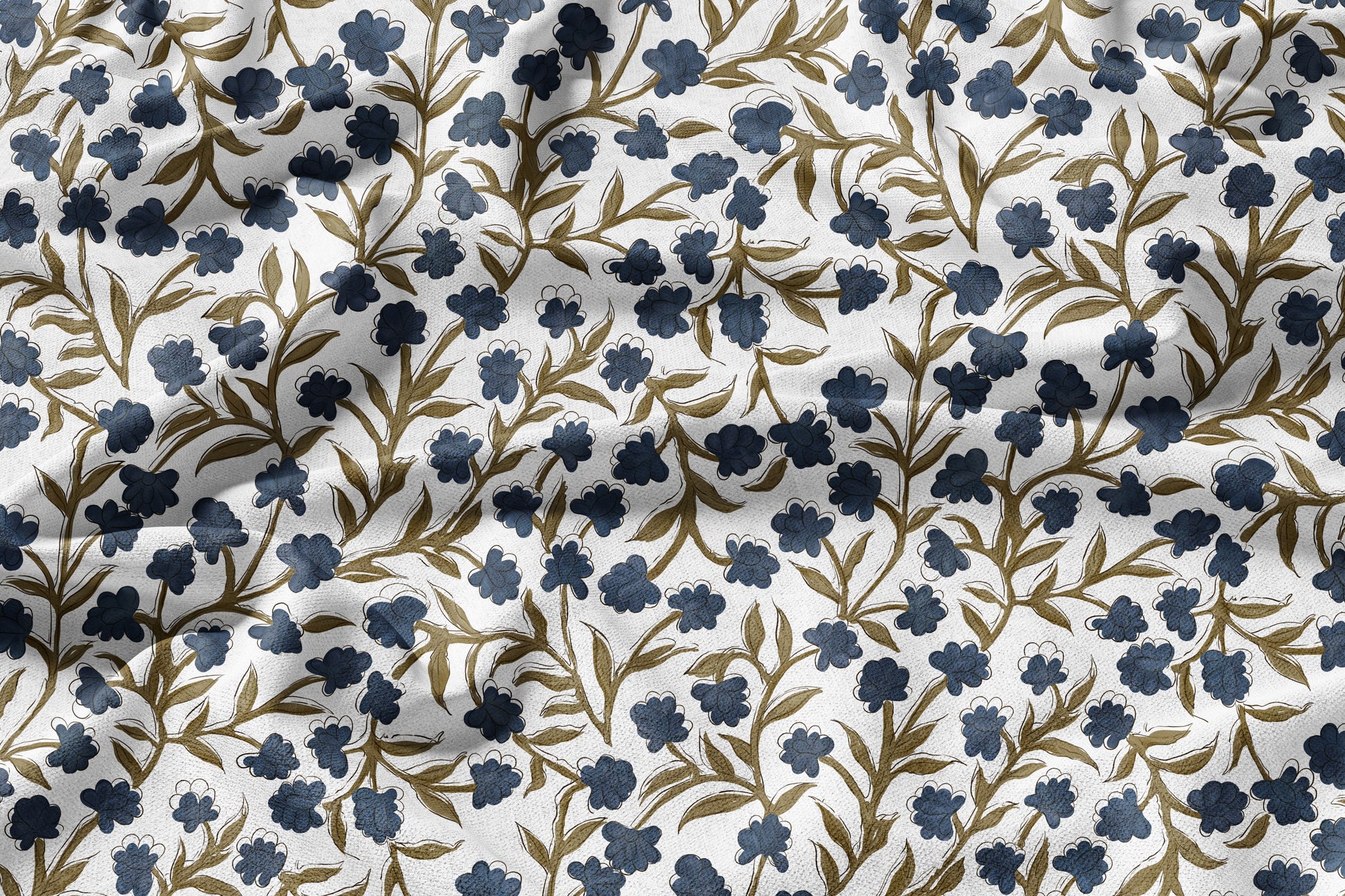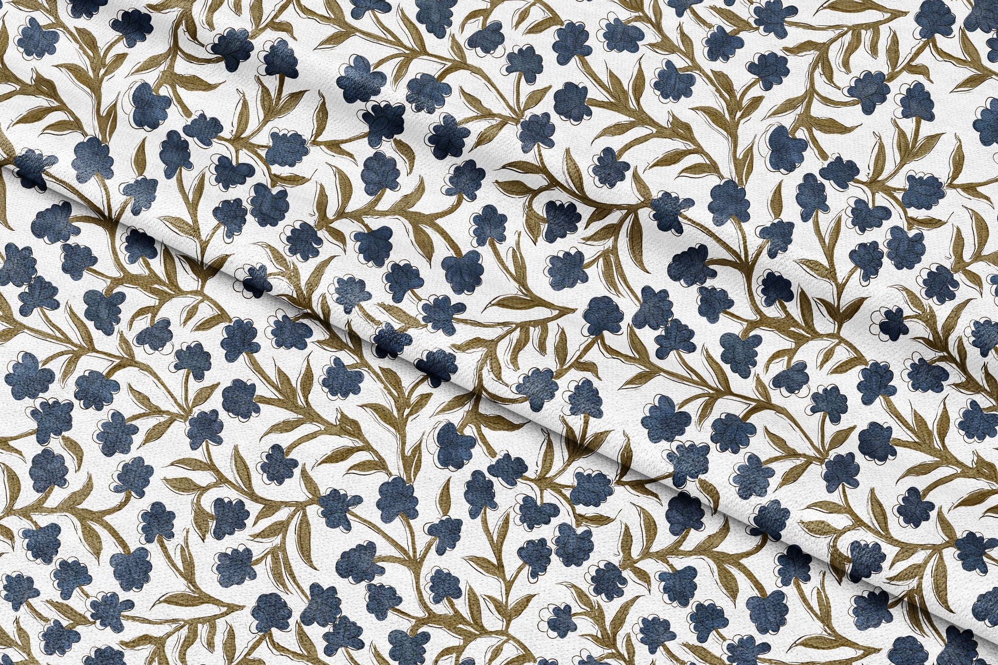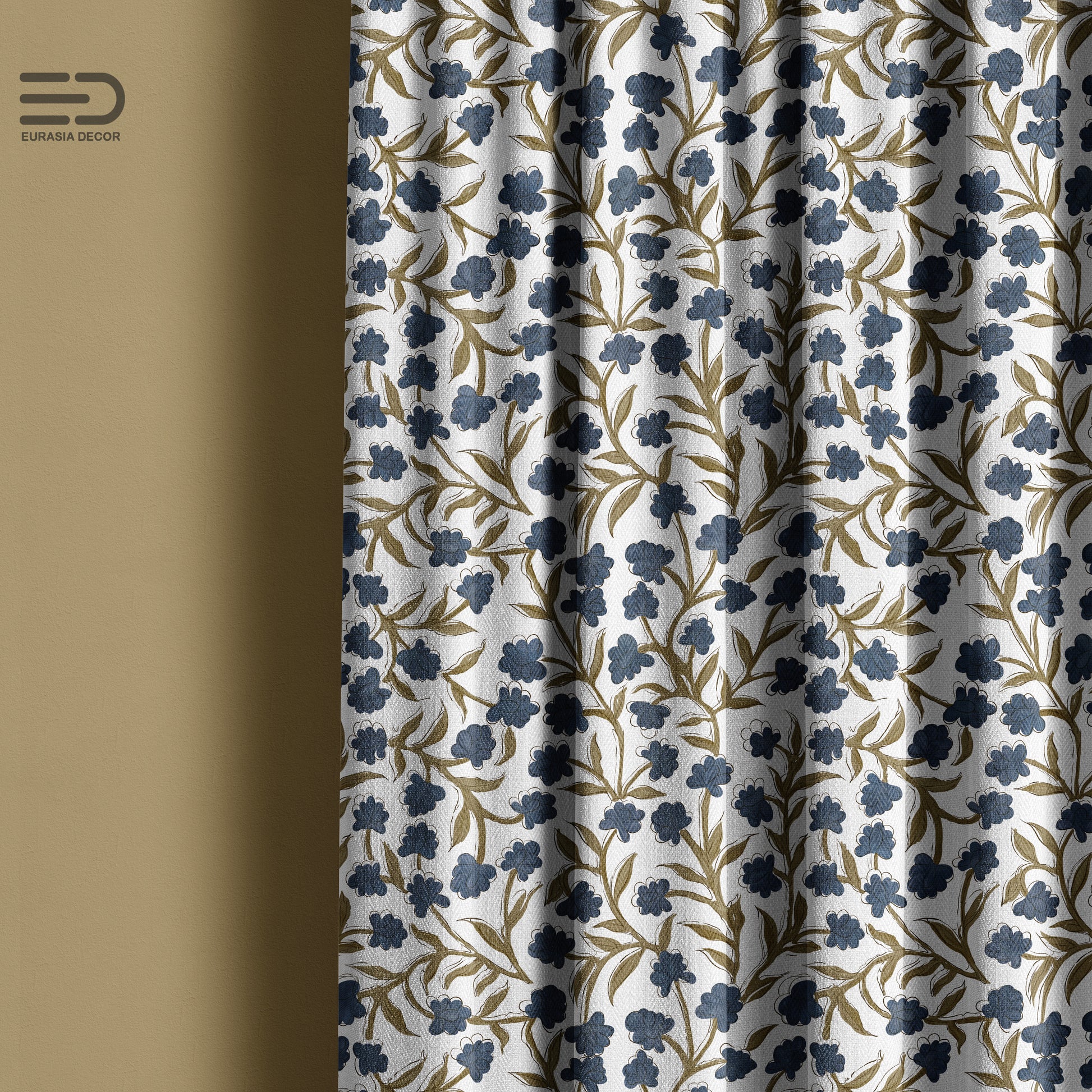 Bring natural elegance to your home with Olive Indigo Bloom, a premium cotton blend fabric featuring hand-drawn blue floral motifs and olive green leaves on a crisp white background. Perfect for curtains, cushions, and decor accents, this timeless botanical design adds a fresh and sophisticated touch to any space.