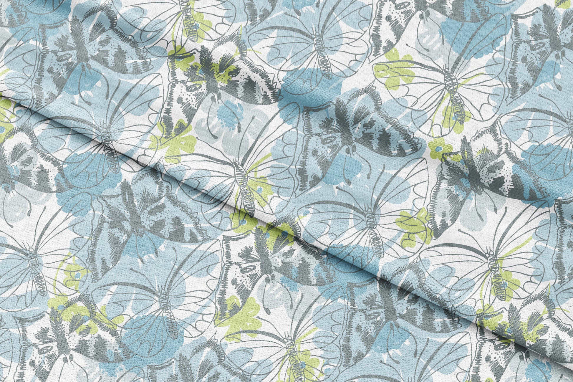 Bring a whimsical touch to your decor with this Wings of Elyra fabric, featuring grey butterflies fluttering across a crisp printed background.